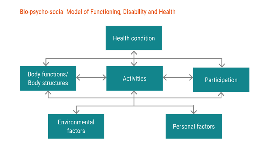 The framework conceptualises disability as multi-dimensional and interactive in that the person’s level of functioning is a combination of their health conditions, environmental factors and personal factors.