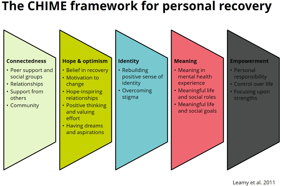 Recovery is a process focussed on resilience, hope and living a meaningful life alongside of mental illness. It is a journey intermingled with both achievements and setbacks.