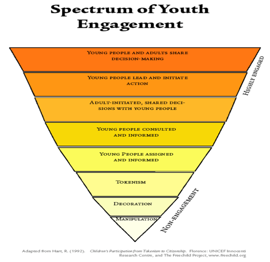 The ladder of participation informs the spectrum of youth engagement as seen below.