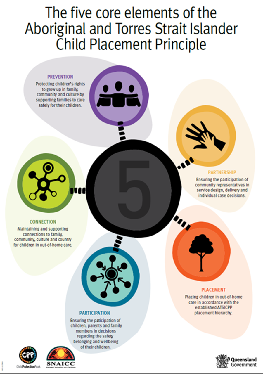 The Aboriginal and Torres Strait Islander Child Placement Principle recognises the value of culture. It also acknowledges how vital it is that Aboriginal and Torres Strait Islander families and communities participate in decisions about the safety and wellbeing of their children.