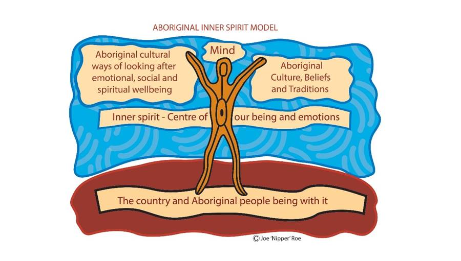 Source: The Aboriginal Inner Spirit Model (Ngarlu Assessment Model) was developed by Joseph 'Nipper' Roe, who belonged to the Karajarri and Yawuru people.
